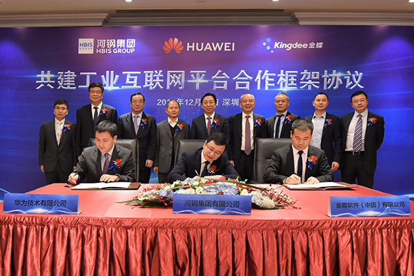 12月19日,河鋼集團(tuán)、華為公司、金蝶集團(tuán)簽署共建工業(yè)互聯(lián)網(wǎng)平臺(tái)合作框架協(xié)議。